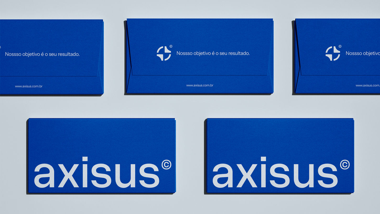 Para a identidade visual, optamos por uma abordagem minimalista e sofisticada. A paleta de tons de azul e off-white transmite seriedade e modernidade, enquanto a tipografia sans serif em minúsculas reforça a clareza da marca. O símbolo – um círculo com setas apontadas para o centro – representa o direcionamento estratégico oferecido pela Axisus. Essa nova identidade consolida sua presença no mercado, fortalecendo sua proposta de valor e criando um diferencial competitivo no setor corporativo.